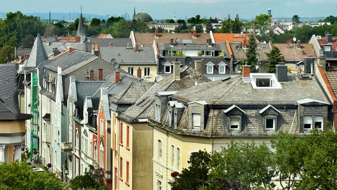 Bekannte Bauwerke u.a. Jugendstilensemble Mathildenhöhe mit Fünffinger-Turm und Russischer Kapelle, Jugendstilbad, Hundertwasserhaus, sehr modernes